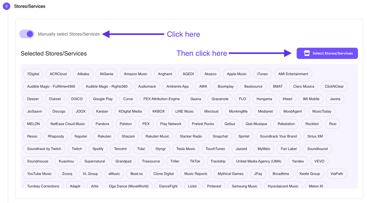 Manually selecting stores and services gives you full control over where your release is delivered. You can fully edit this information on the Uploader, and you can edit certain aspects through an Edit Request.