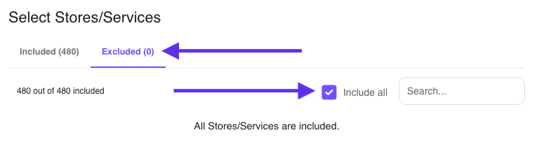 - All stores/services are selected for distribution by default. If you would like to exclude a service from distribution, uncheck the box next to the name of the store/service.